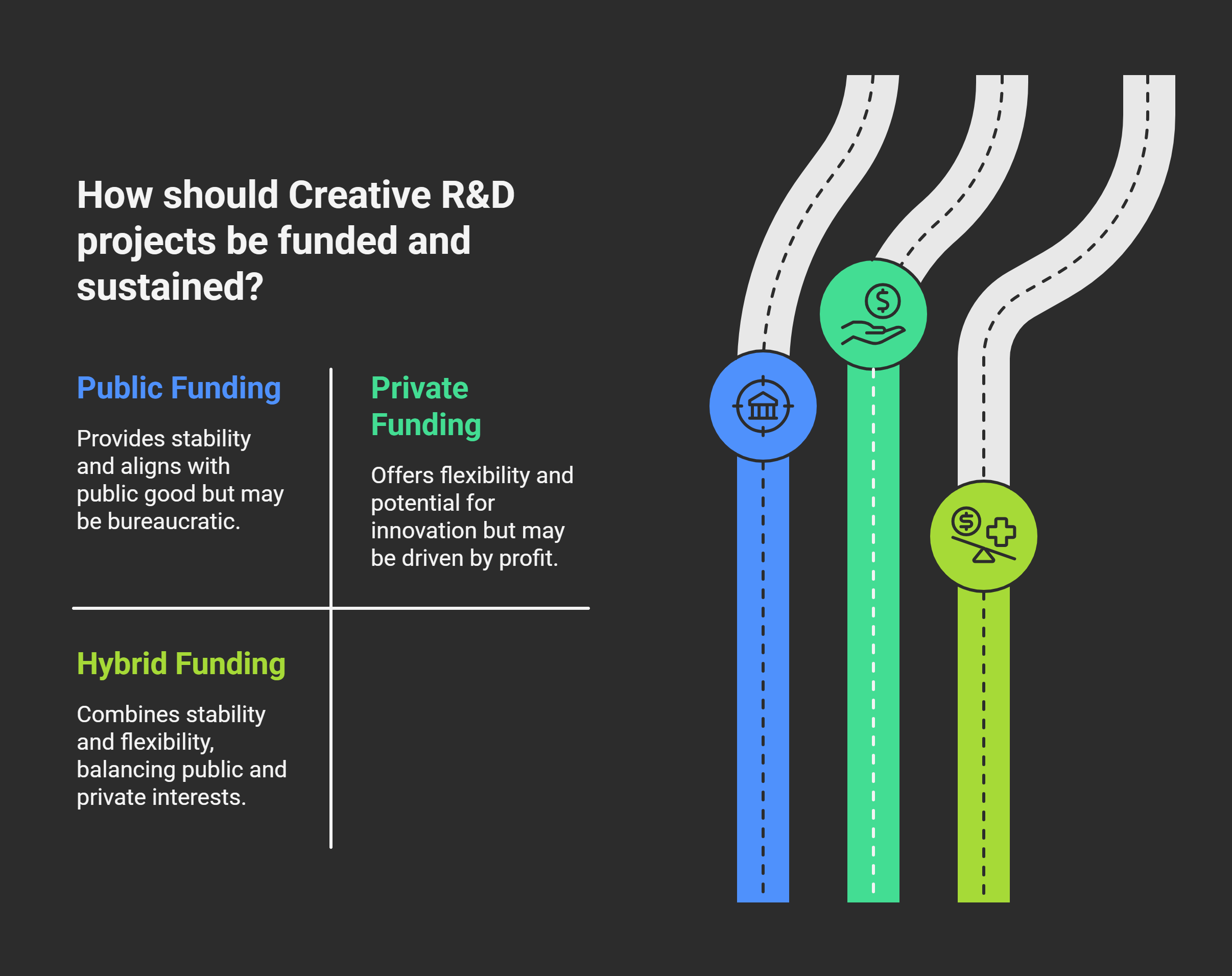The argument is strong, especially with the focus on the creation of public goods and public engagement. However, there should be ways to develop long-term funding outside of this kind of government-led grant system. One of these would be through private funding - something Nesta was also sensitive to as it argued for tax breaks. So who would fund this? First, risk takers who see a potential upside if something developed becomes a productized success. Second, a long-term ARR of around 15% could be enough to attract those people with a desire to diversify their portfolios. Third, this can be combined with a broader filanthropic arm and, fourth, public funding.